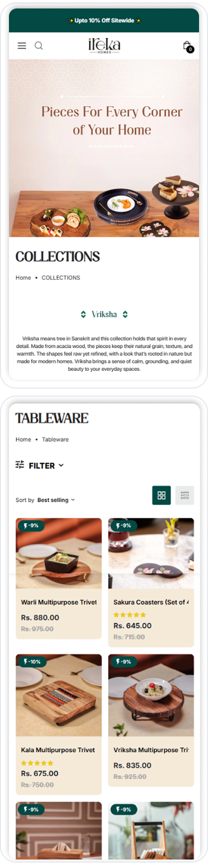 We simplified and regrouped collections so users could browse by everyday use rather than technical product types. This made navigation feel lighter and helped users move through the site with more ease.